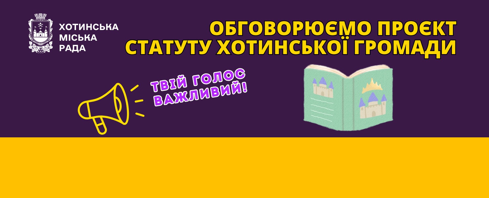 ✅ Запрошуємо кожного мешканця Хотинської громади долучитись до обговорення та надати свої пропозиції чи зауваження до проєкту Статуту Хотинської громади.
