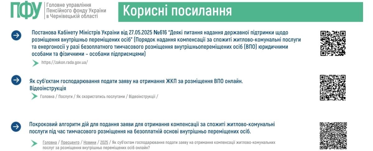 Корисні посилання щодо подання заяв про отримання компенсації за спожиті житлово-комунальні послуги під час тимчасового розміщення на безоплатній основі внутрішньо переміщених осіб