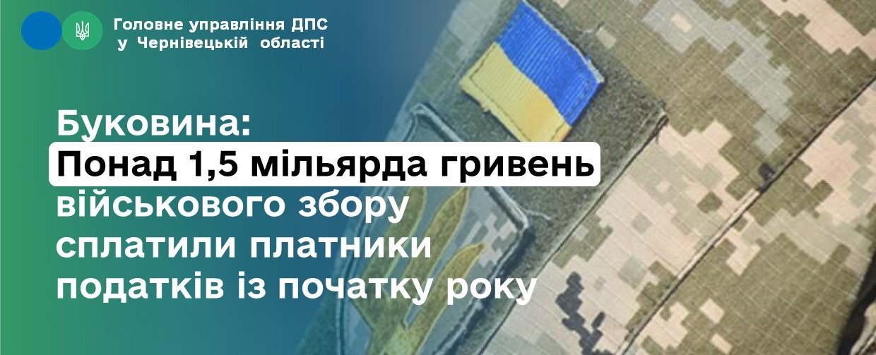 Понад 1,5 мільярда гривень військового збору сплатили платники податків із початку року