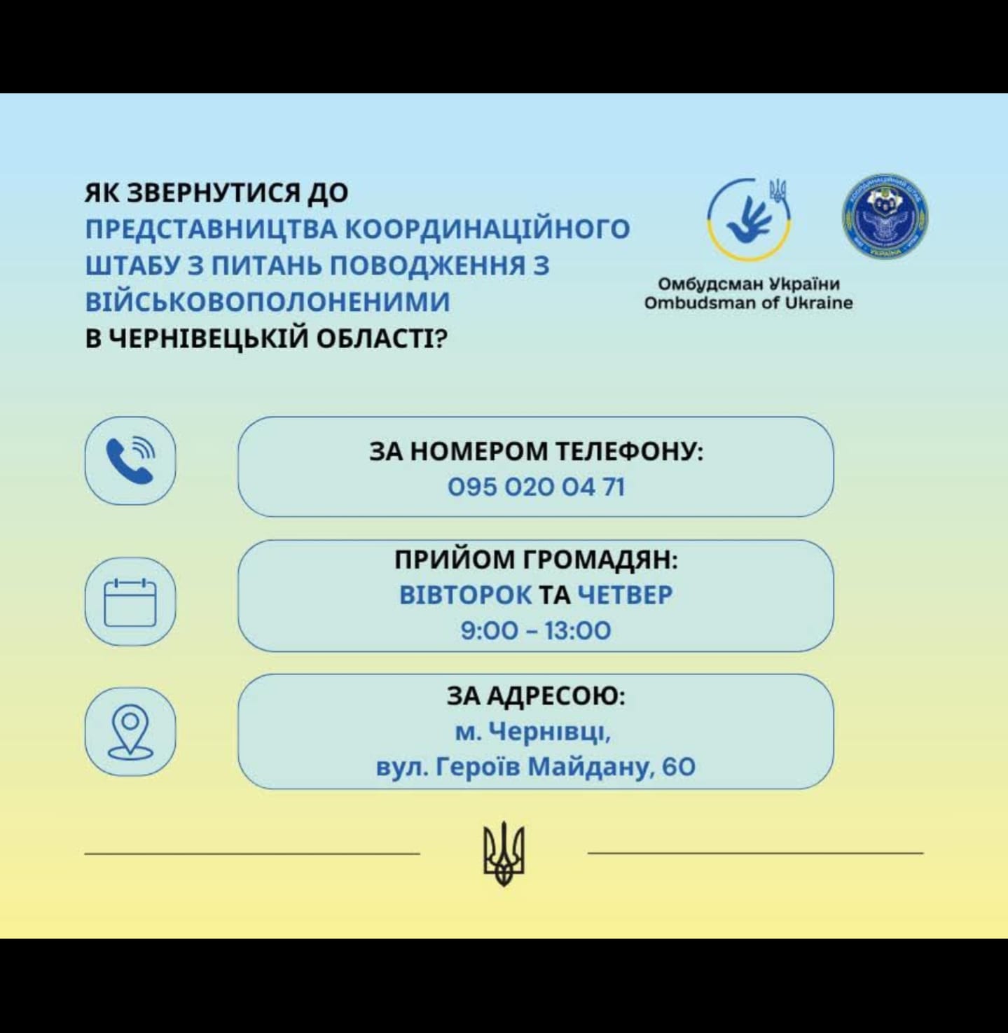 Контакти Представництва Координаційного штабу з питань поводження з військовополоненими