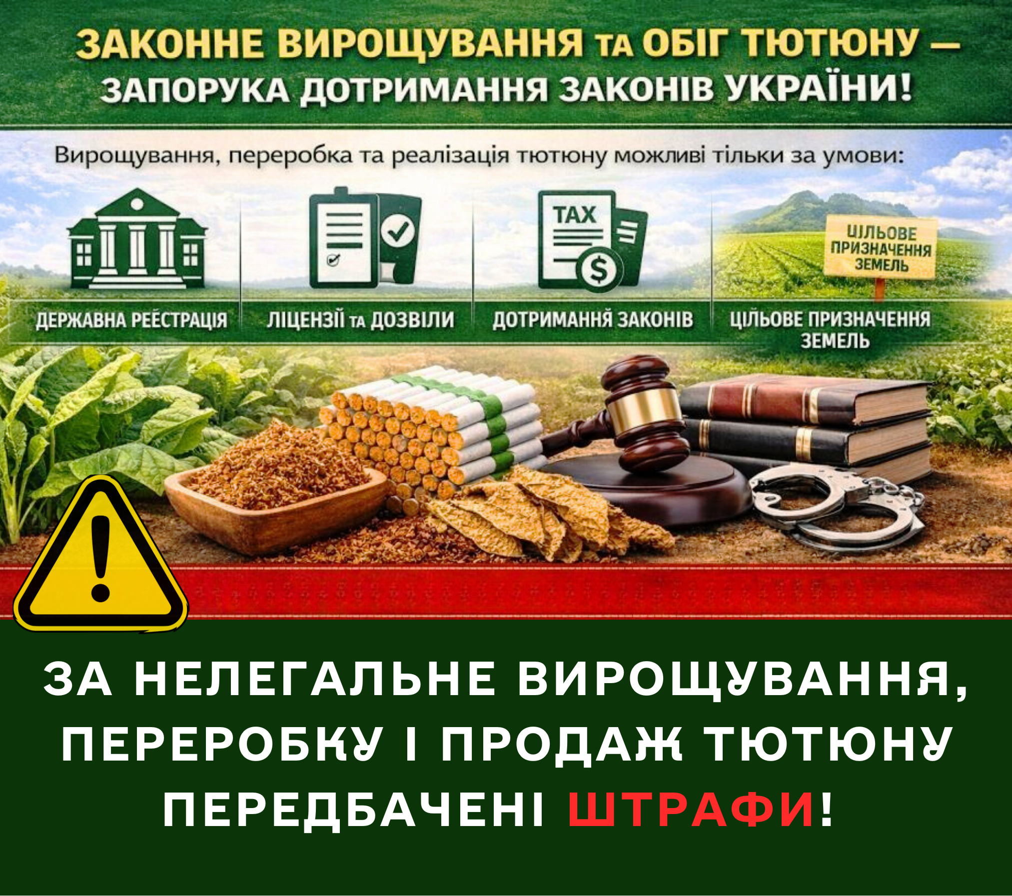Незаконне вирощування, переробка або реалізація тютюну може призводити до порушення вимог законодавства, створювати передумови для незаконного виробництва тютюнових виробів та спричиняти втрати надходжень до державного та місцевих бюджетів.
